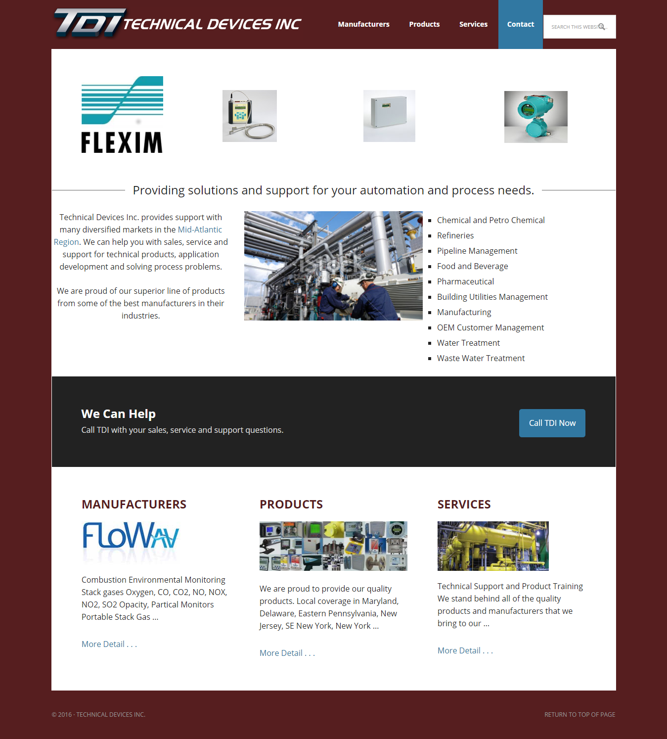 Technical Devices Inc (TDI) is a manufacturer’s rep for a variety of devices for automation and processing applications. When a previous developer had left them in a lurch they were referred to Cap Web Solutions to get their website back online and updated to current trends and capabilities.